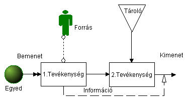 Mik a folyamat részei? – Bemenet és kimenet (input, output) – Egyed (unit, entity) – Tevékenységek (activities) hálózata – Tárolók (storages) – Források (resources) – Összekötők (connections) – Információs felépítés (information structure)