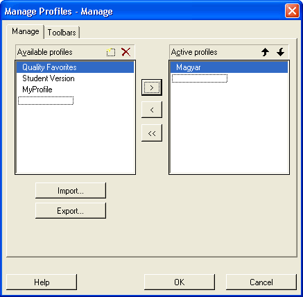 Active profiles mezőbe betéve a Magyar profilt majd OK –t választva a MINITAB menüpontjai magyarra váltanak át. Eredeti angol nyelvű menükészlet visszaállítható, ha az Active profile mezőben ismét a MyPrifile fájlt visszük be. Megjegyzés: