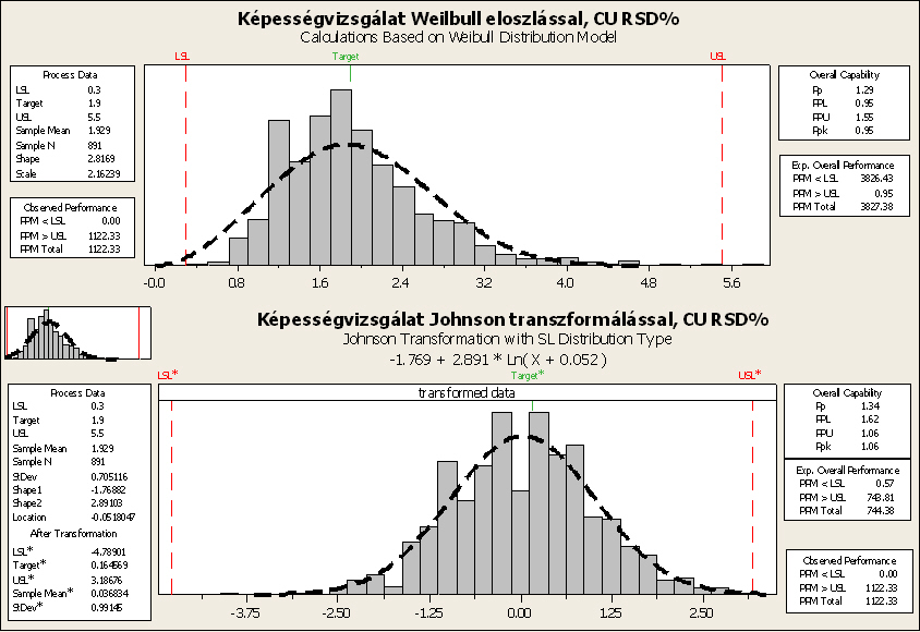 Képességvizsgálat Weilbull eloszlással és Johnson transzformációval