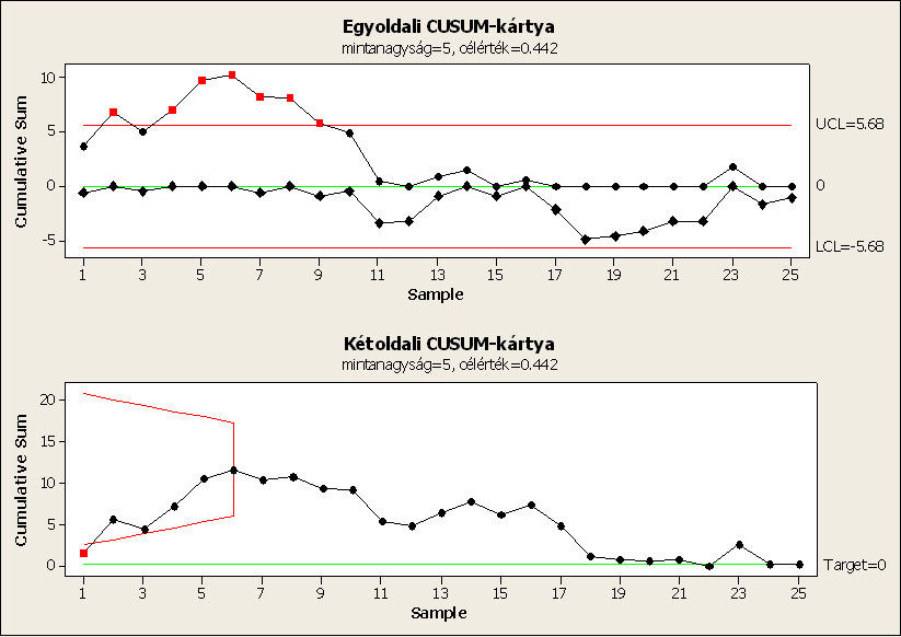 CUSUM-kártyák mutatják az eltolódást