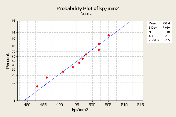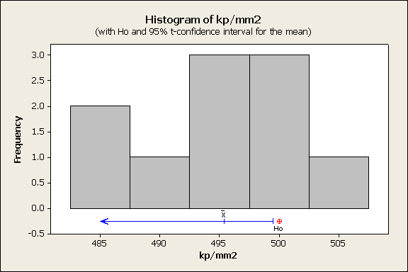 Következésképpen a nullhipotézist elvetjük és mondhatjuk, hogy az adatok alapján a betonelemek törőszilárdsága kisebb, mint 500 kp/mm2.