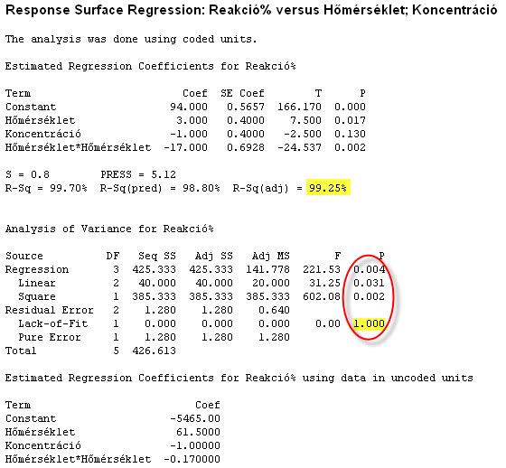 Reakció = -5465 + 61.5Hőmérséklet - Koncentráció - 0.17Hőmérséklet*Hőmérséklet