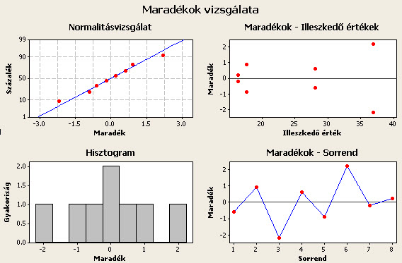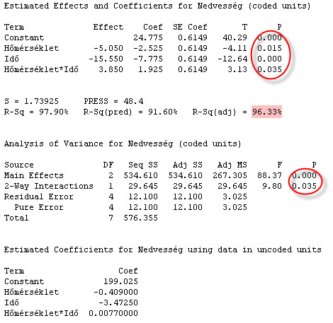 Nedvesség = 199.025 - 0.409Hőmérséklet - 3.472Idő + 0.0077Hőmérséklet*Idő