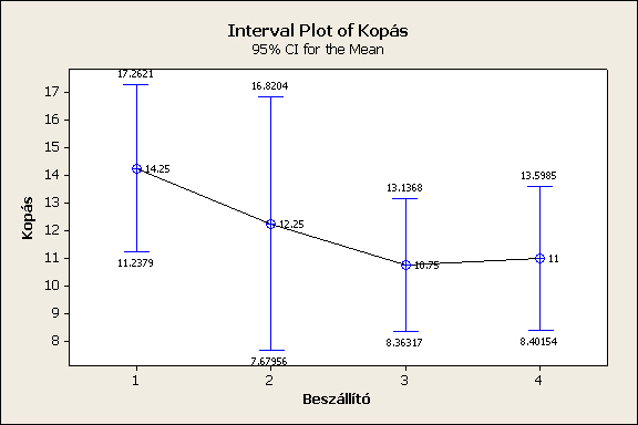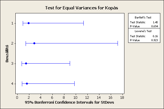 H0 (nullhipotézis): a beszállítók között nincs lényeges különbség
