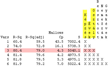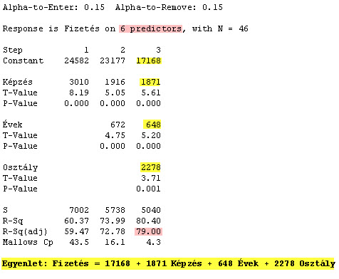 A hat jóslási változóból hármat tartott meg a lépcsős regresszió, mint fontos változókat.