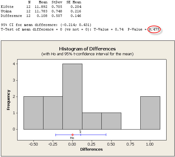 H0 (nullhipotézis): a két adatcsoport várható értéke megegyezik (különbségük = 0) H1 (ellenhipotézis): a két adatcsoport várható értéke nem egyezik meg (különbségük ≠ 0)