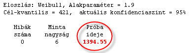 Ha a terméket javítjuk és az új terméknél az 5%-os kvantilis 421 óra helyett