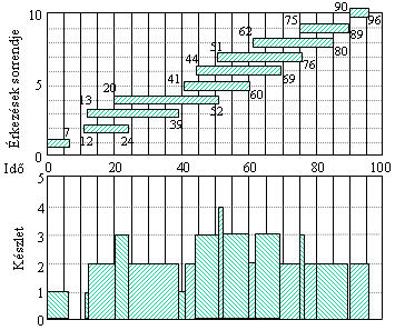 Érkezések sorrendje, szolgáltatás ideje, sorbaállás (készlet)